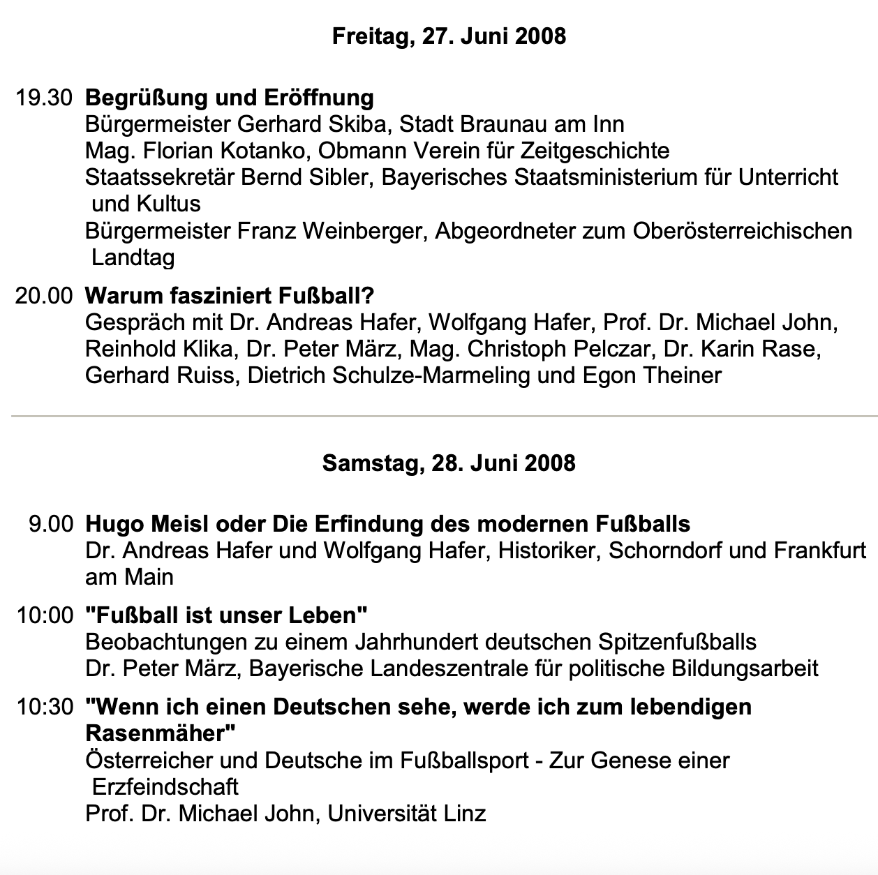 Am 27. und 28. Juni 2008 nutzten die 17. Zeitgeschichte-Tage im Kulturhaus GUGG das spielfreie EM-Wochenende, um das Phänomen Fußball zu diskutieren.