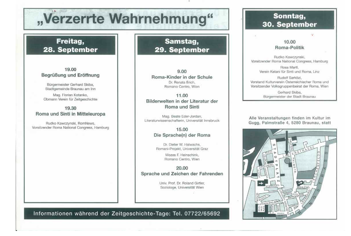 Roma und Sinti im Fokus: Die 10. Braunauer Zeitgeschichte-Tage 2001 beleuchteten Geschichte, Sprache, Politik und kulturelle Darstellung dieser Bevölkerungsgruppe in Österreich und Europa. Eröffnet wurde die Tagung von Rudko Kawczynski.